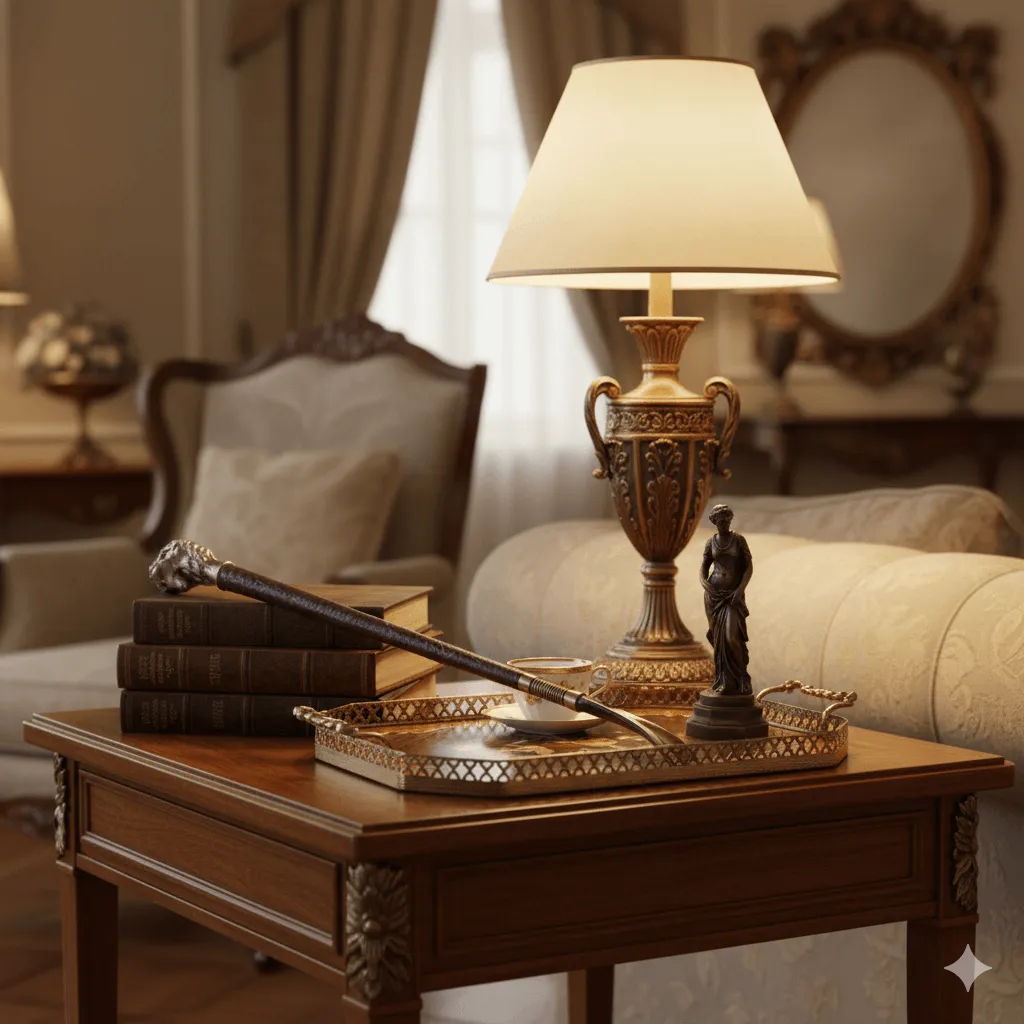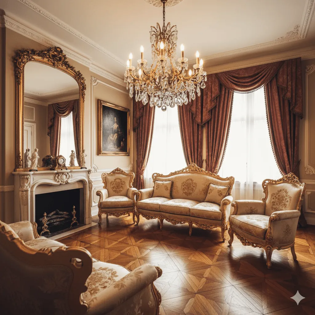 نورپردازی در این سبک، نه تنها کاربردی، بلکه یک عنصر تزئینی مهم است. لوسترهای کریستالی بزرگ، چراغهای رومیزی با پایههای برنزی و شمعدانهای دیواری، به شکوه فضا میافزایند. از نورهای گرم و ملایم استفاده کنید تا حس آرامش و راحتی را در خانه تقویت کنید.