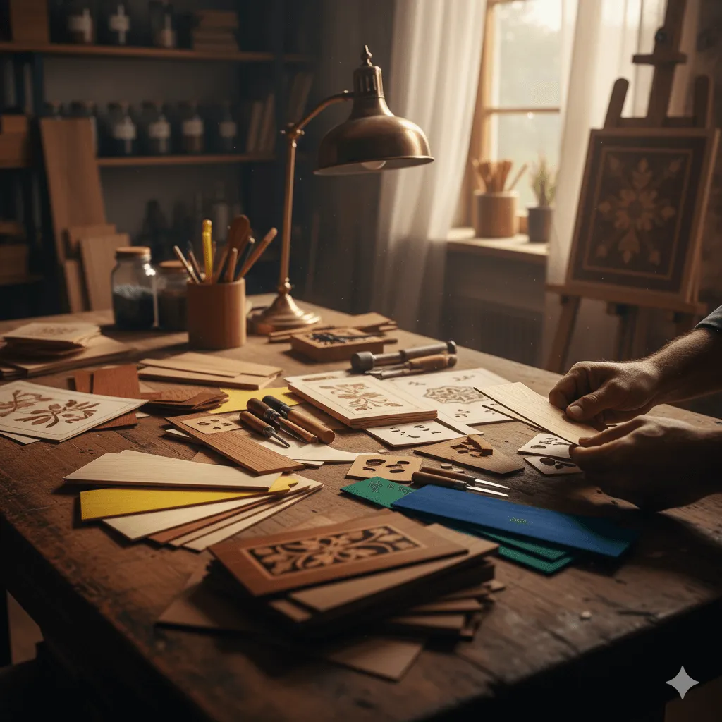 هنر معرق، تلفیقی چشمنواز از رنگ و طرح است که ریشه در ظرافت و دقت دارد. قلب این هنر، انتخاب و استفاده از انواع چوبهای طبیعی است که هر کدام با رنگ و بافت منحصربهفرد خود، به اثر نهایی روح میبخشند.