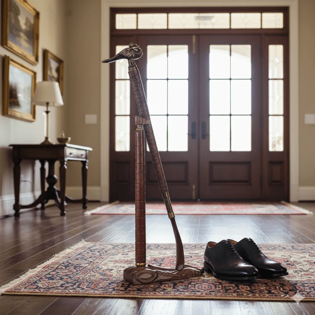 این مجموعه لوکس، شامل یک پاشنهکش و استند ایستاده است که با طراحی متمایز خود، جلوهای از وقار و اصالت را به فضای ورودی منزل شما میبخشد. مجسمه در پاشنهکش از جنس زاماک با دقت فراوان ساخته شده و با دسته چوبی یا چرمی ست میشود. استند پاشنهکش نیز از جنس و بافت دسته پاشنهکش ساخته شده که یک ست کاملاً هماهنگ و کاربردی را تشکیل میدهد. این مجموعه، فراتر از یک ابزار روزمره، یک دکوراسیون لوکس و چشمنواز است که به خاطر طراحی منحصربهفرد و کاربردیاش، نظر هر بینندهای را جلب میکند.