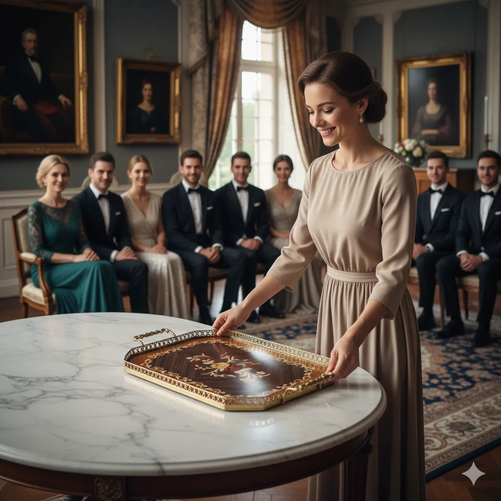 این سینی معرقکاری، محصولی فاخر و تجملی است که با ترکیب رنگی چشمنواز و طراحی کلاسیک، جلوهای از شکوه را به نمایش میگذارد. پسزمینه آن از چوب گردوی تیره و صیقلی ساخته شده که با خطوط هندسی منظم و بافت طبیعی خود، عمق و جذابیت خاصی به کار بخشیده است. در بخش میانی، نقشی از گلها و برگهای ظریف با استفاده از چوبهای روشن و رنگی قرار گرفته که همچون نگینی درخشان در قلب این اثر میدرخشد. حاشیه و دستههای فلزی با طرح پیچیده، زیبایی و دوام این سینی را دوچندان کردهاند. این محصول، نمادی از سلیقه و اصالت است که به عنوان یک کالای ارزشمند، میتواند زینتبخش هر خانهای باشد.