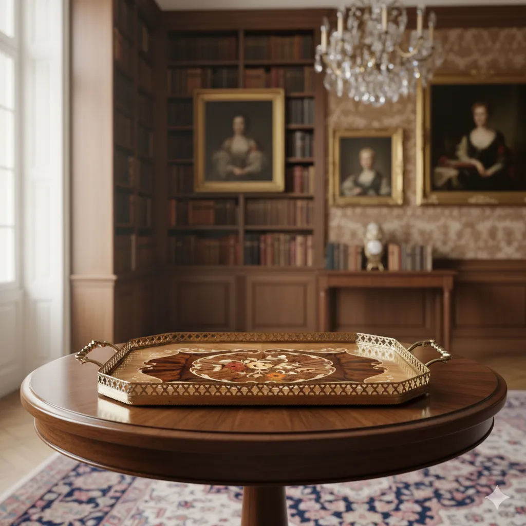 این سینی معرقکاری، محصولی بینظیر و خلاقانه است که با ترکیب بافتهای متنوع چوبی، چشماندازی منحصربهفرد را به نمایش میگذارد. پسزمینه آن از چوب افرا با رگههای موجدار و طبیعی ساخته شده که حسی از پویایی و لطافت را منتقل میکند. در مرکز، قابی هشتضلعی از چوب گردوی تیرهتر، طرح اصلی گلدار را در بر گرفته است. این نقوش، با ظرافت و دقت فراوان، همچون یک نگارگری طبیعی در قلب سینی میدرخشند. حاشیه و دستههای فلزی با طرح زنجیرهای، جلوهای از صلابت و اصالت را به این شاهکار اضافه میکنند. این سینی، انتخابی برای افرادی با سلیقهای متمایز و نگاهی هنرمندانه به زندگی است.